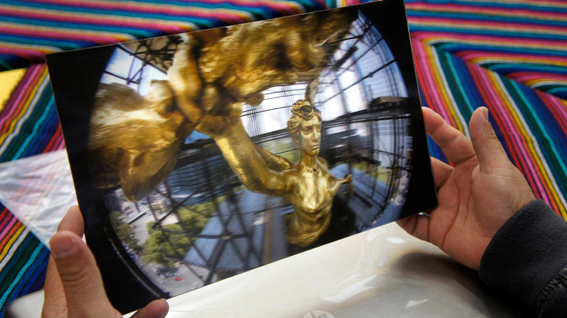 Mural lenticular de 6 metros con efectos de mórfosis de los escudos de las Constituciones de México.