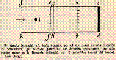 Alberto Korda, Guerrillero Heroico, 1960, © Alberto Korda, 1960, Courtesy Korda Estate and Diana Diaz. Fuente: Internacional Center of Photography. http://www.icp.org/site/c.dnJGKJNsFqG/b.1288073/k.B3BA/Che.htm Recuperado: 3 feb. 2006. Parece confundirnos este acto de “magia” fotográfica. Cada imagen significa algo distinto, aunque sea la misma. Y la atribución de determinados valores cambia según sea el caso. No son más ni menos verdaderas o falsas, simplemente son imágenes distintas. Y socialmente tienen valores diferentes. Lo que da sentido de verdad o falsedad a una imagen es la interpretación que de ella se hace, y la subjetividad que se plasma en dicha interpretación. Tal interpretación va desde lo estrictamente individual hasta lo discursivamente establecido en una sociedad determinada, en sus cánones, valores, criterios y discursos retóricos. 1. Fotoperiodismo: verdad y realidad Hablar del problema de la verdad siempre ha resultado un reto. ¿Qué es la verdad? ¿Qué es la realidad? Son dudas permanentes. Pero cuando nos acercamos a la imagen, y le aplicamos tales conceptos, las dudas cambian de forma ¿es verdad lo que vemos en una imagen? ¿tiene algo que ver la imagen con la realidad? Acudimos a dos grandes filósofos griegos para dar respuesta a estas preguntas. Platón (s. II a. C), en resumen, plantea que la verdad reside en las ideas. Es un idealista en el sentido racional del término, y afirma que las ideas son inmutables. Para explicar su tesis construye la Alegoría de la Caverna ( libro VII de Repúblic a, 514a-516d) , algo así: