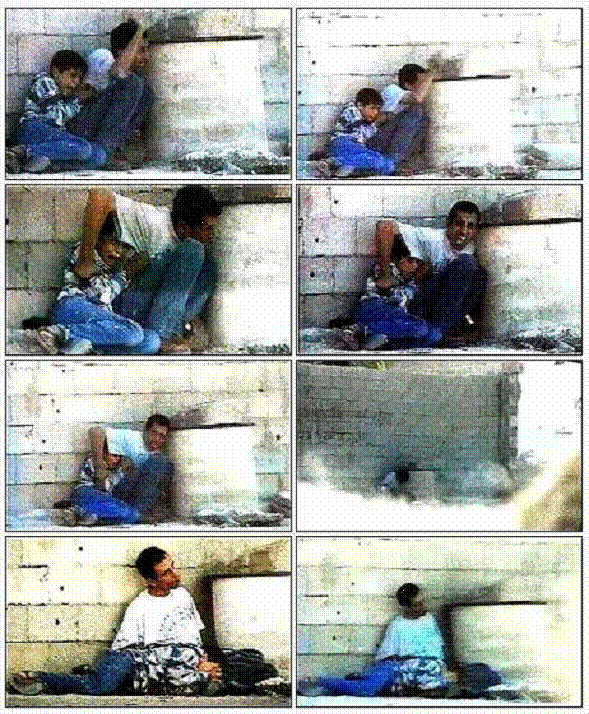 1. El barril de concreto detrás del que se esconde el padre para protegerse del tiroteo del lado derecho de la foto donde se hallaban las fuerzas israelíes y hacia donde se ve al hombre mirar repetidamente en busca de protección. 2. El gesto del padre quien descubre sorpresivamente a alguien frente él y grita "¡no disparen!" ante la cámara (Fotograma 4-5). 3. El salto abrupto de la cámara y su imagen borrosa en el instante del disparo (fotograma 6) lo que prueba cuán cerca estaba el francotirador al camarógrafo palestino Talal Abu Rahma quien tomó el video y brincó hacia atrás y, 4. El hueco circular perfectamente simétrico detrás del cuerpo del niño que prueba que la bala se disparó desde el frente. 10