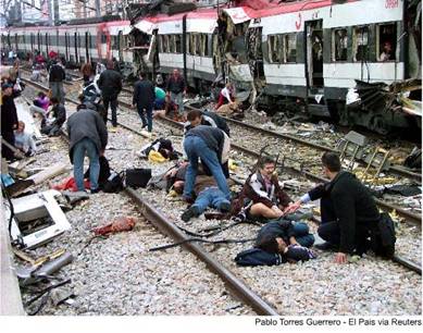 Madrid. Jueves 11 de marzo de 2004: Diez estallidos terroristas, presuntamente provocados porla organización Al Qaeda , sacuden la capital española. En las inmediaciones de la ciudad, cuatro trenes son literalmente destrozados por la fuerza de cargas explosivas. El pánico, la confusión y la muerte rodean a las personas que viajan en ellos. Ciento noventa y dos muertos y mil cuatrocientos heridos son el saldo del atentado. Minutos después, los cuerpos de rescate y salvamento, en medio de una enorme confusión, acuden a auxiliar a las víctimas. Los fotógrafos de prensa, por supuesto, están presentes para hacer su trabajo.