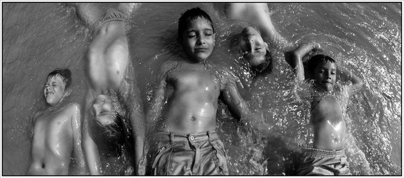 en un arroyo, mientras el sol contrasta con la fria agua que